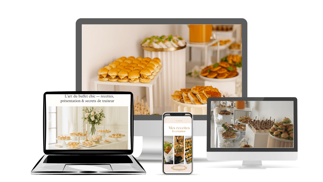 Vous rêvez de vous lancer dans le domaine du traiteur ou de perfectionner vos compétences culinaires ? Notre e-book est conçus pour vous guider pas à pas dans votre aventure. Découvrez nos idées de mignardises incontournables, l’art de créer des mises en place qui marquent les esprits, et pour faire briller votre activité !